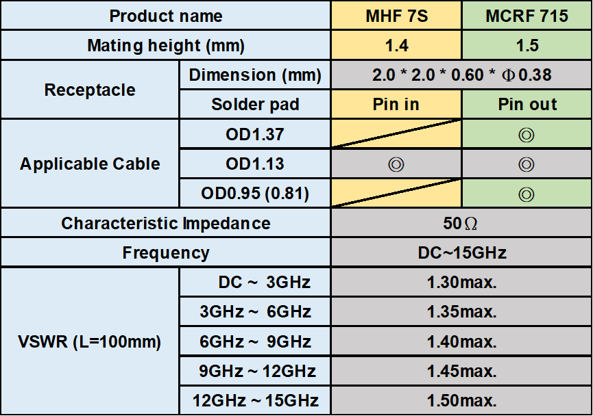 •715コネクタがリセ及びプラグ二種類があり、I-PEX社のMHF 7S機種の同級製品であること。